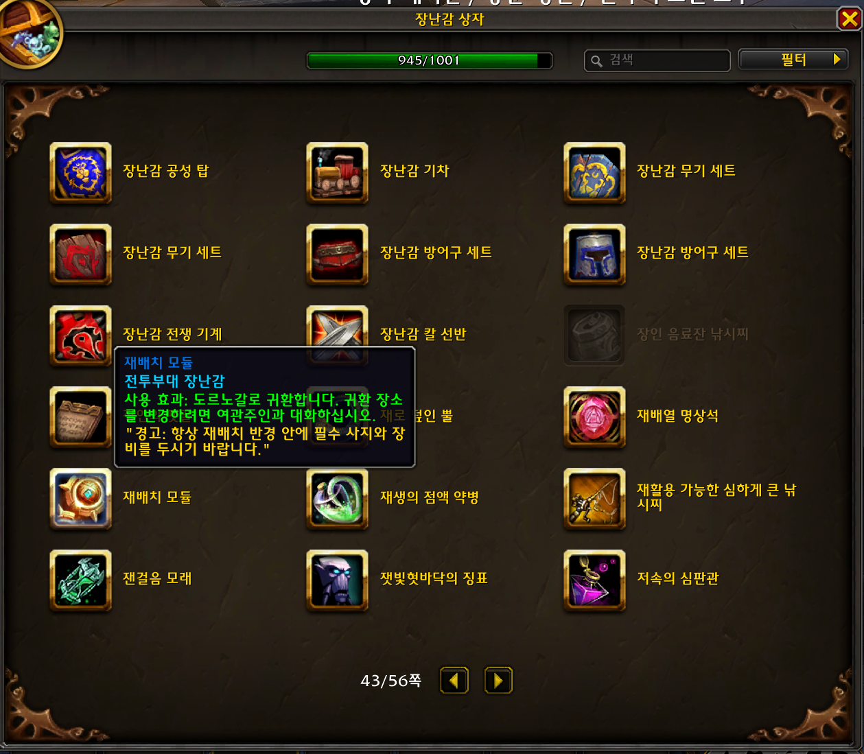 재배치 모듈 장난감은 내부전쟁 확장팩 장난감으로 과충전 구렁 탐험가 업적보상입니다.