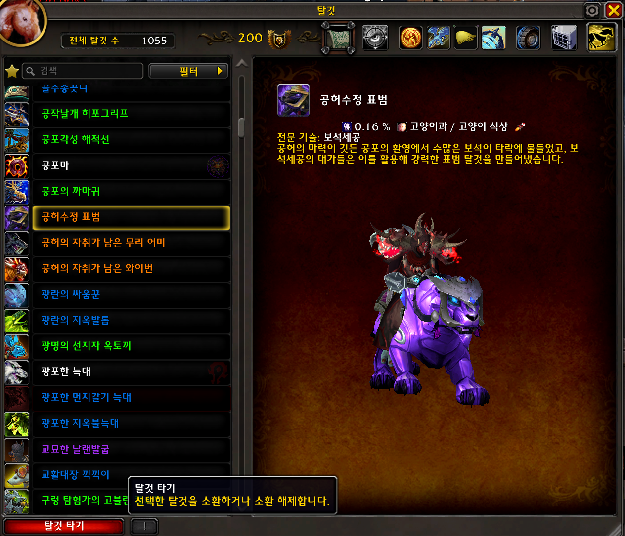 공호수정 표범 탈것은 내부전쟁 확장팩탈것으로 보석세공전용 탈것입니다.