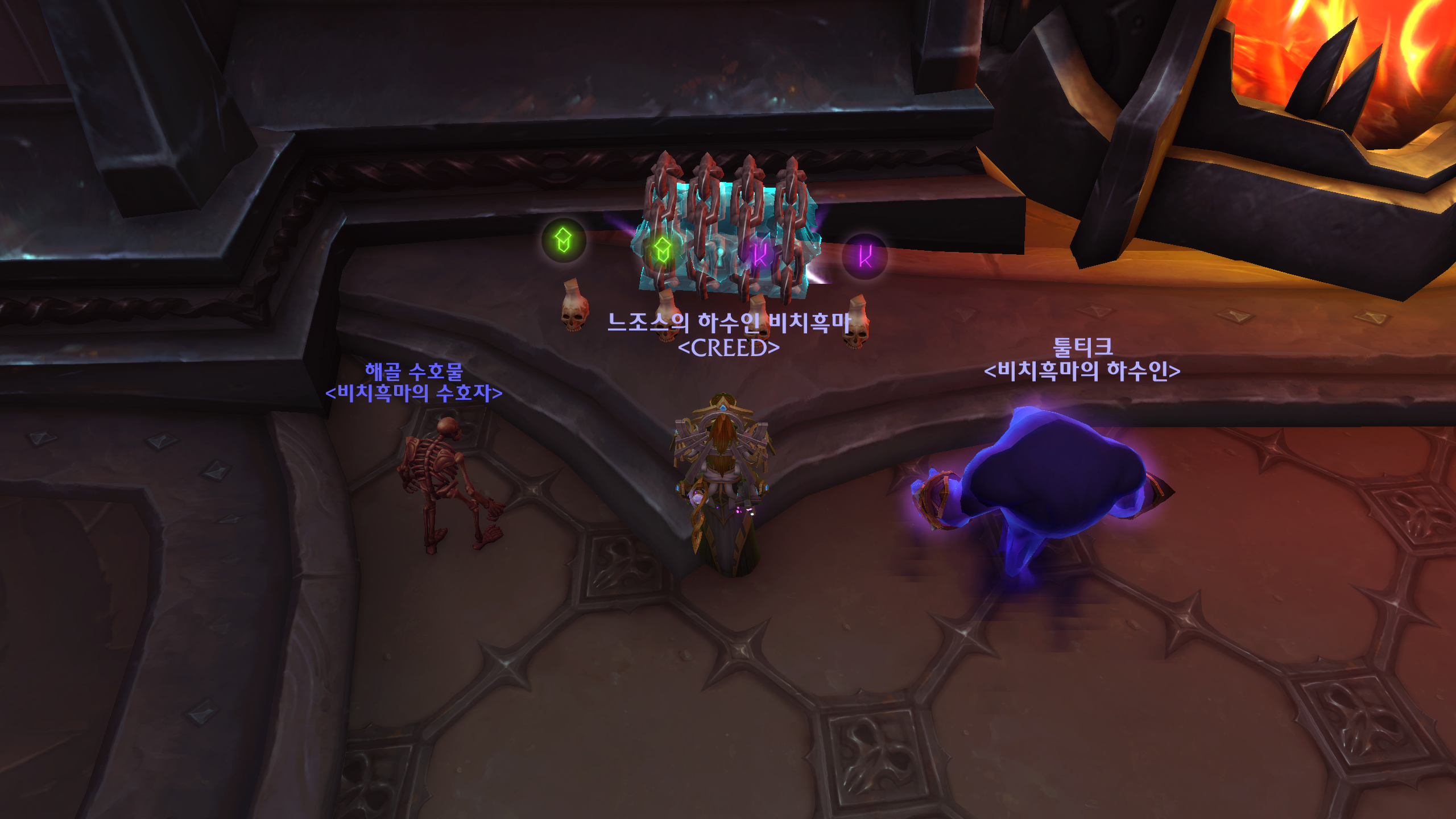 - 영혼 제련실 - 영혼 제련실의 열기 : 5초마다 최대 생명력의 1%의 화염 피해를 입습니다. 피해량은 중첩됩니다.