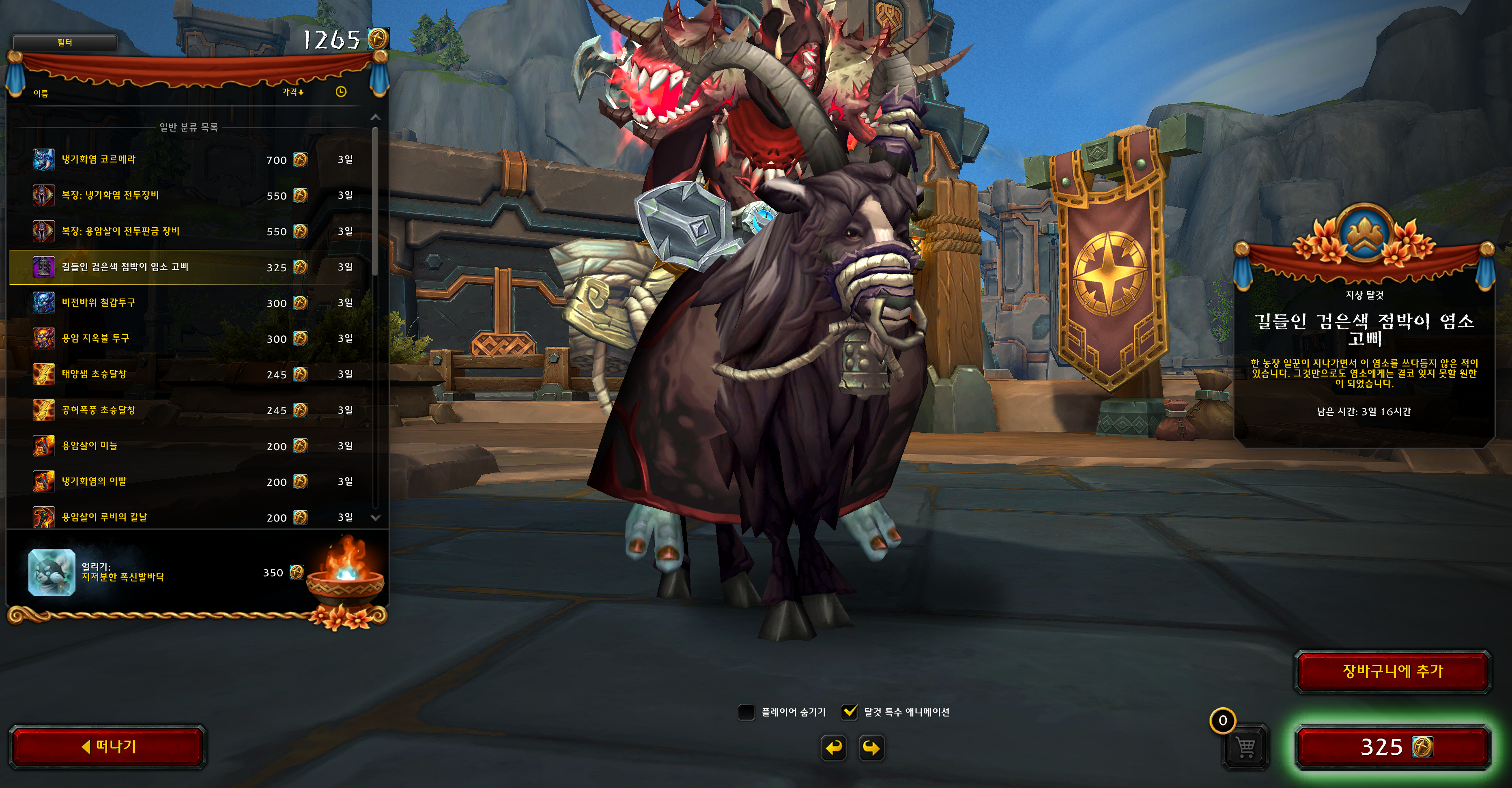 2025.06.29 길들인 검은색 점박이 염소 획득 1056번째 탈것
