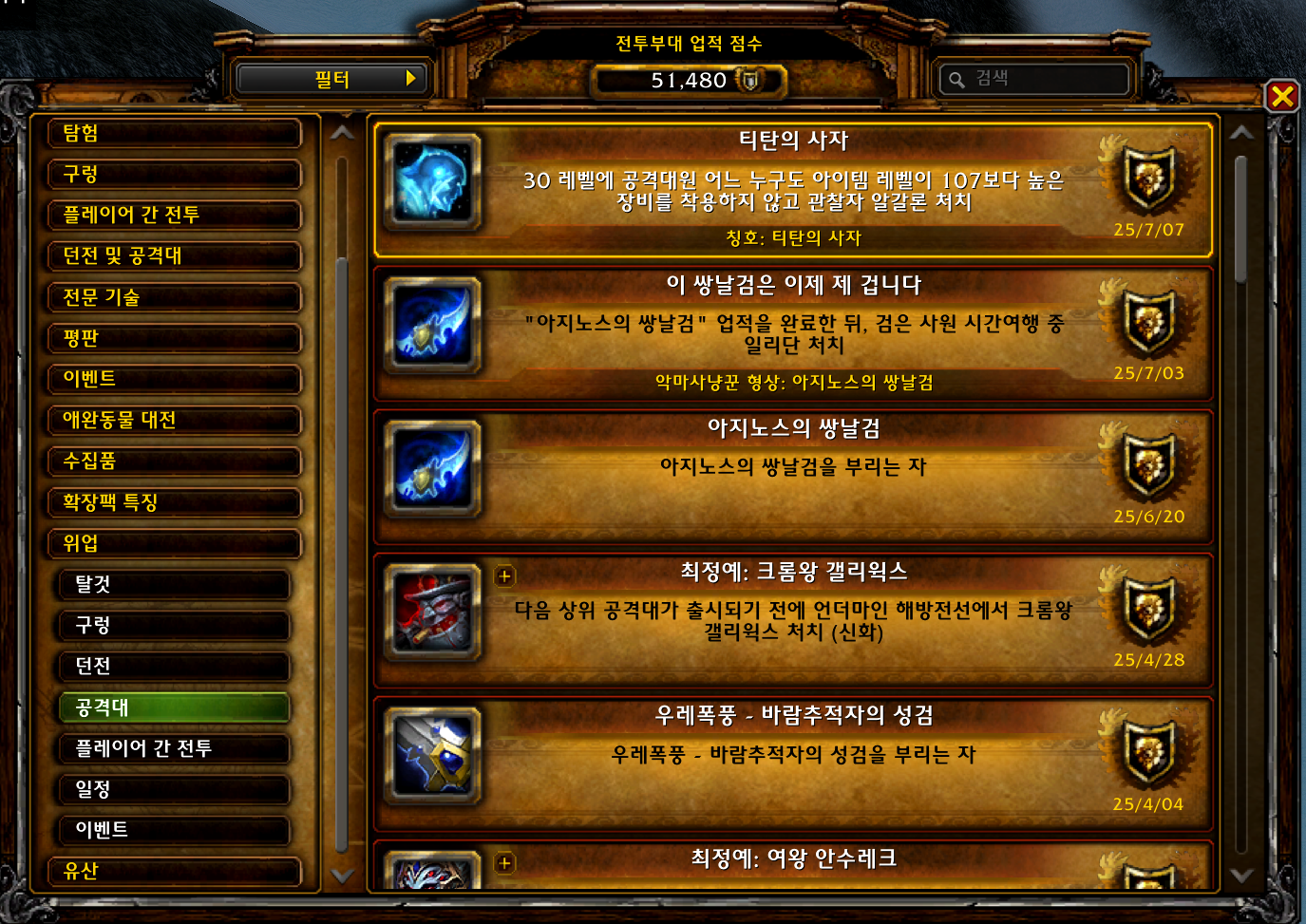 2025.07.07 티탄의 사자 획득 위업