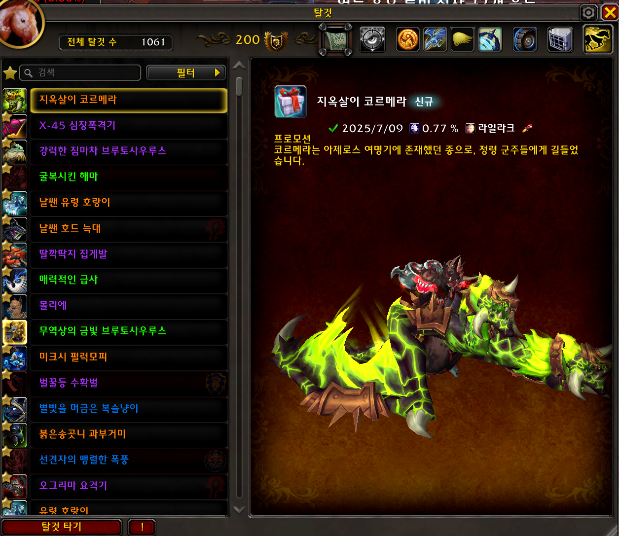 2025.07.09 지옥살이 코르메라 획득 1061번째 탈것