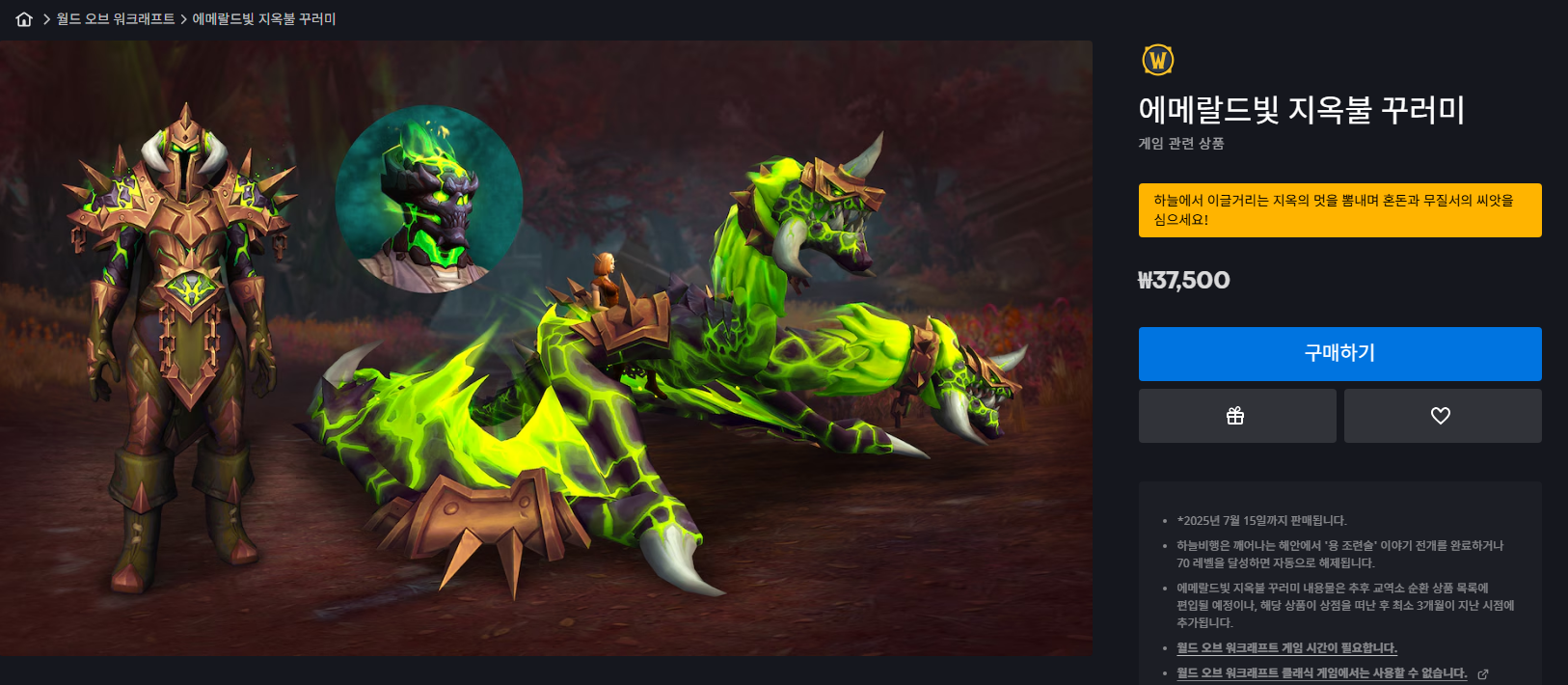 지옥살이 코르메라 탈것은 블리자드샵 탈것입니다.
