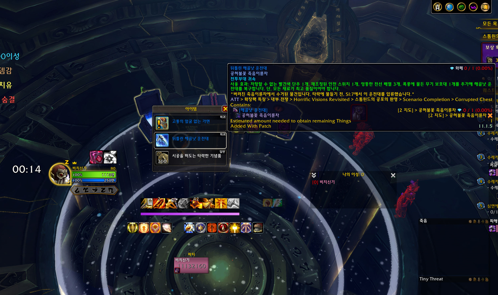 최소 1가면을 착용하고 스톰윈드 환영 상업지구 / 오그리마 지혜의 골짜기 를 돌면 각각 촉수 바퀴살 1개 / 공허불꽃 저항 가죽 1개를 획득가능해서 2개 2개가 모입니다. 한곳을 2번도는건 안됩니다.