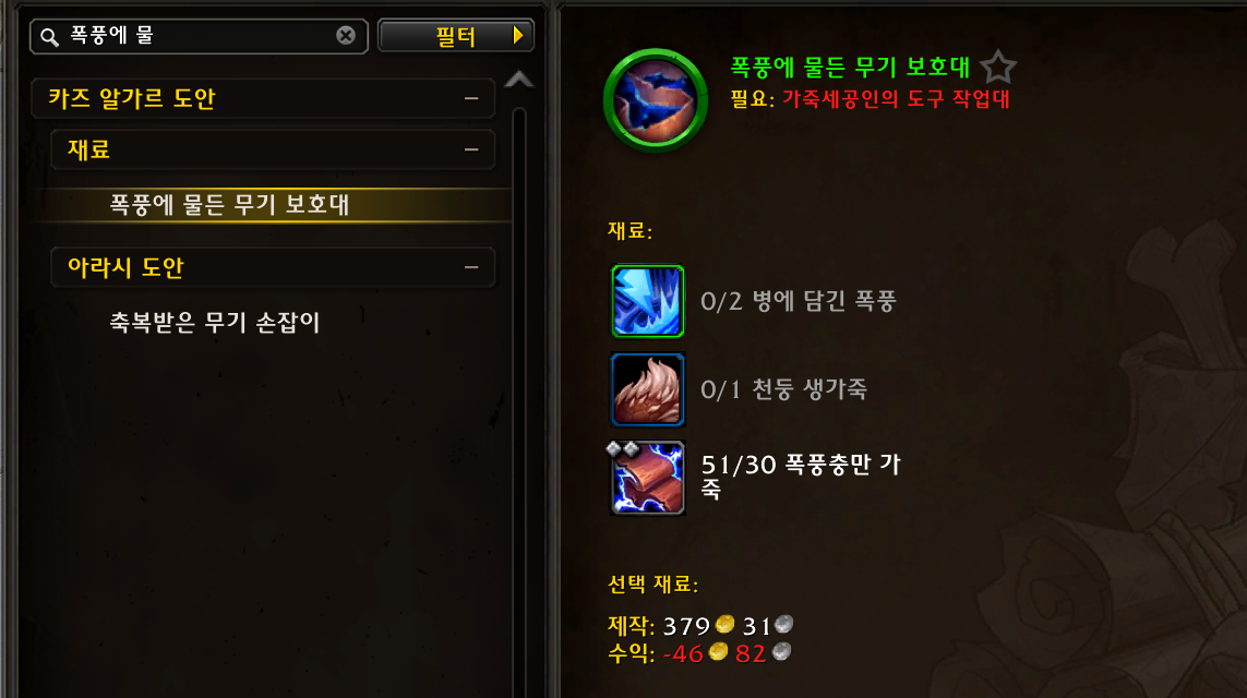 기공재료가 많이 필요해서 기공캐릭으로 진행하면 재료값도 아끼고 조금덜 귀찮습니다.