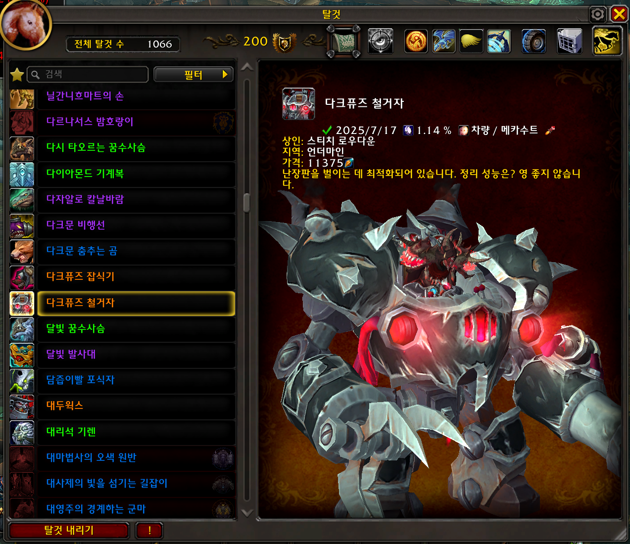 2025.07.17 다크퓨즈 철거자 획득 1066번째 탈것