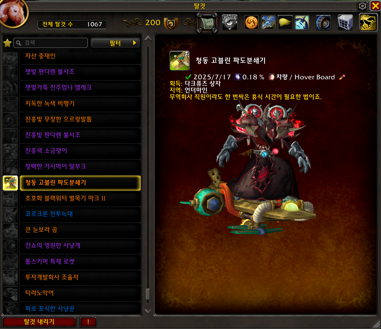 2025.07.17 청동 고블린 파도분쇄기 획득 1067번째 탈것