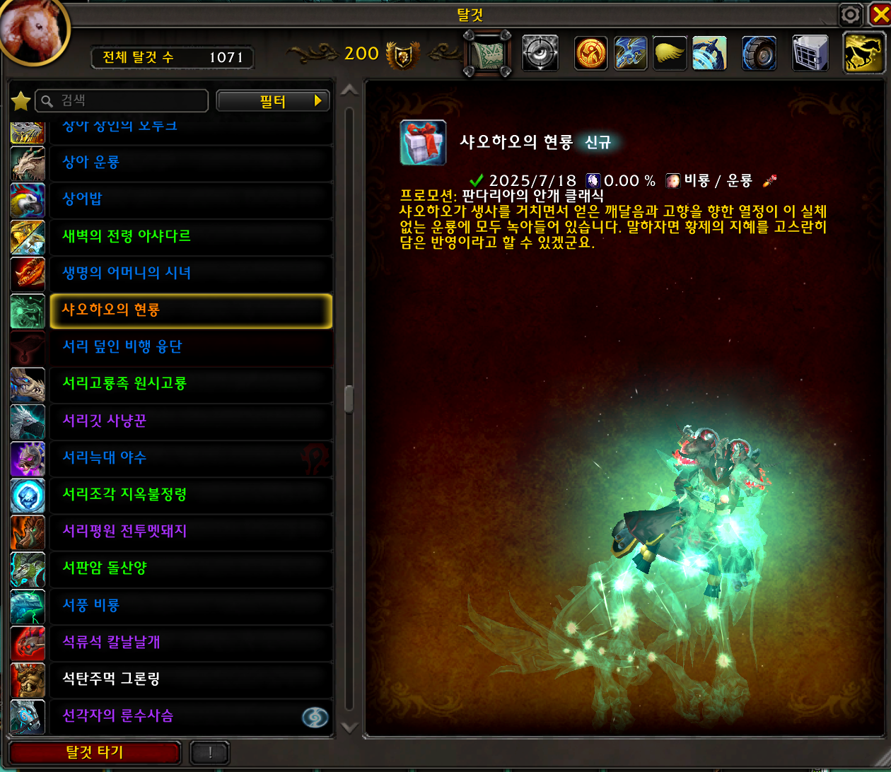 2025.07.18 샤오하오의 현룡 획득 1071번째 탈것