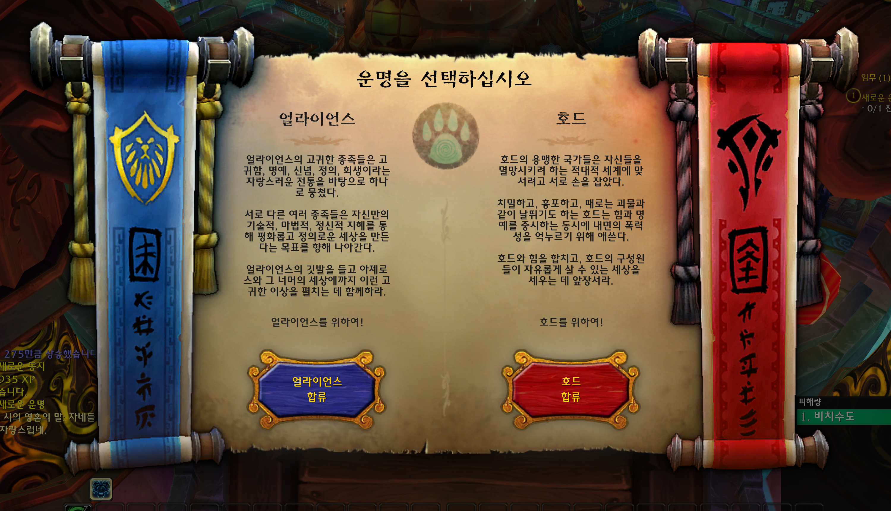 진영을 선택하고 저는 호드를 선택했는데 호드기준으로 오그리마까지오고 접종하고 본섭에 접속하면 탈것이 들어와있었습니다.