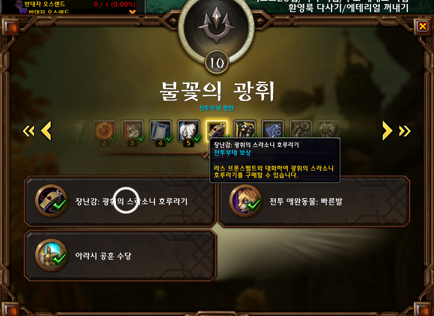 불꽃의 광휘 영예6이 되면 구매가능합니다.