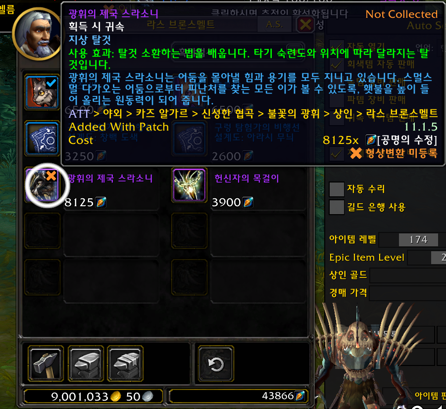 광휘의 제국 스라소니 탈것은 내부전쟁 확장팩 탈것으로