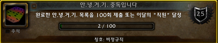 안.녕.거.기. 2회차 업적은 내부전쟁 확장팩 업적으로 안녕거기목록을 2회 제출하는 업적입니다.