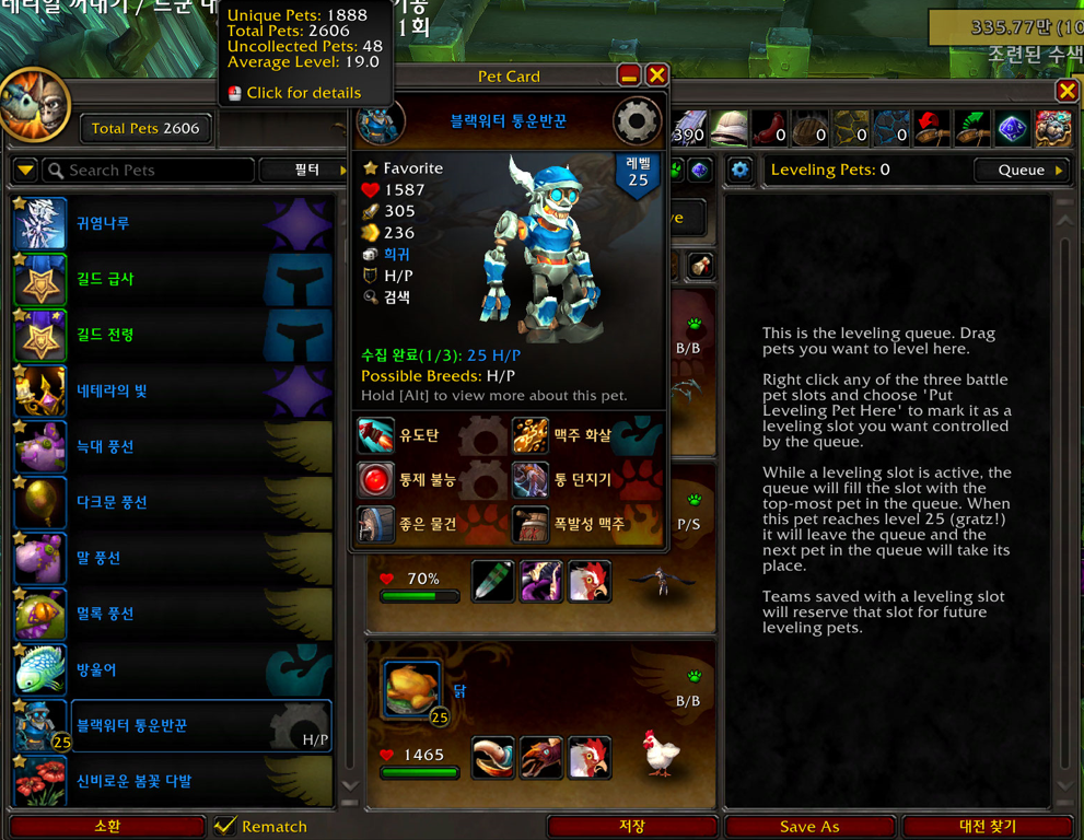 2025.08.04 블랙워터 통운반꾼 획득 1888번째 애완동물