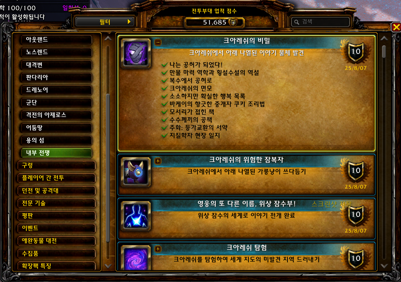 | [와우업적]크아레쉬 탐험 (0) | 2025.08.07 |