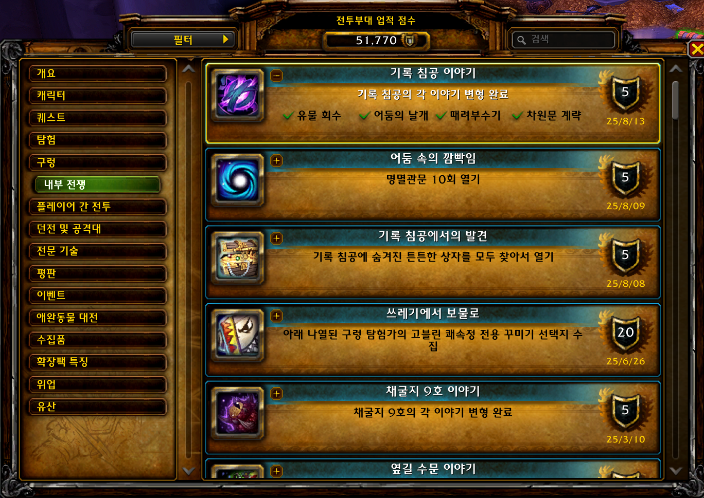 2025.08.13 기록 침공 이야기 획득 5점짜리 51770점