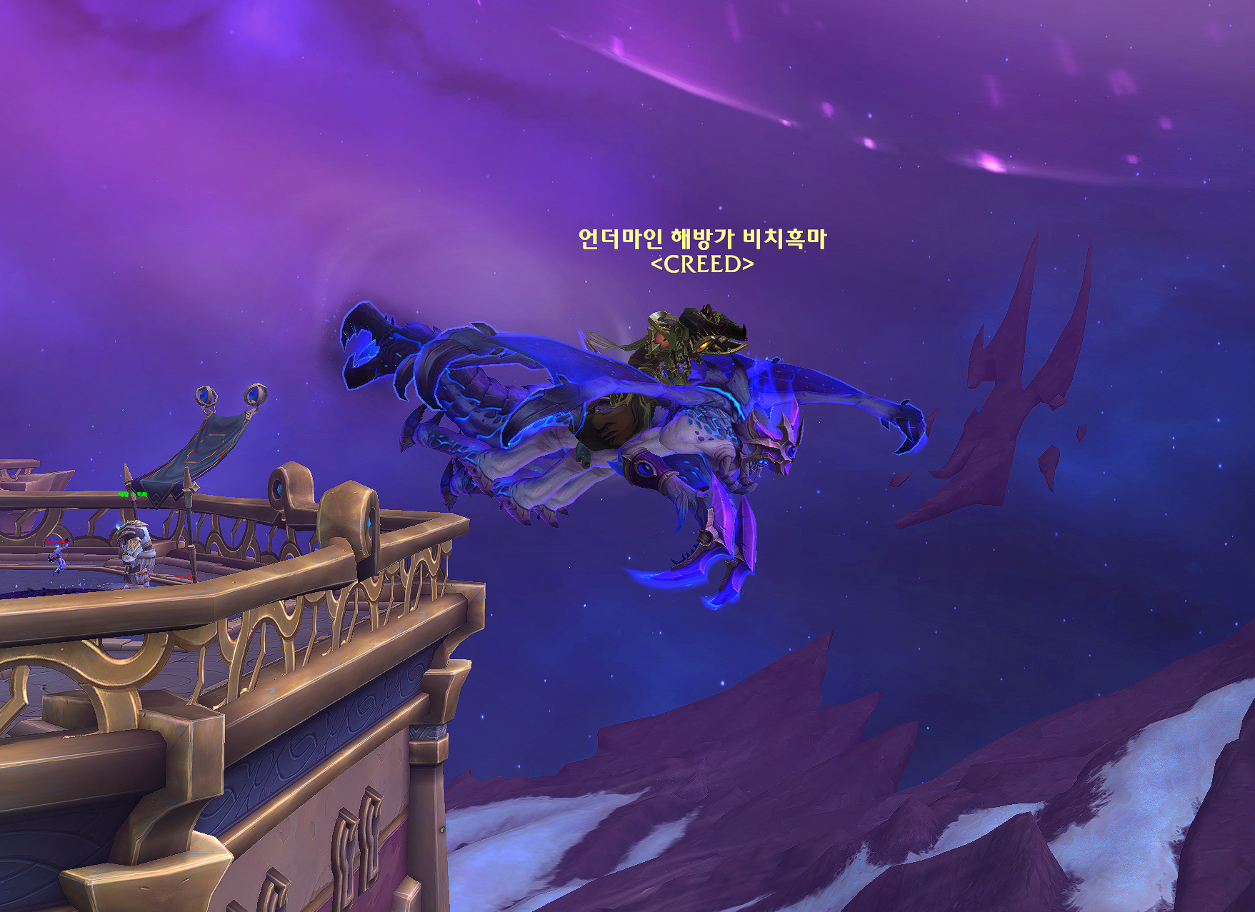 하늘빛 공허 비행수탈것은 내부전쟁 확장팩 탈것으로 내부전쟁 3시즌 쐐기 2000점 보상입니다.