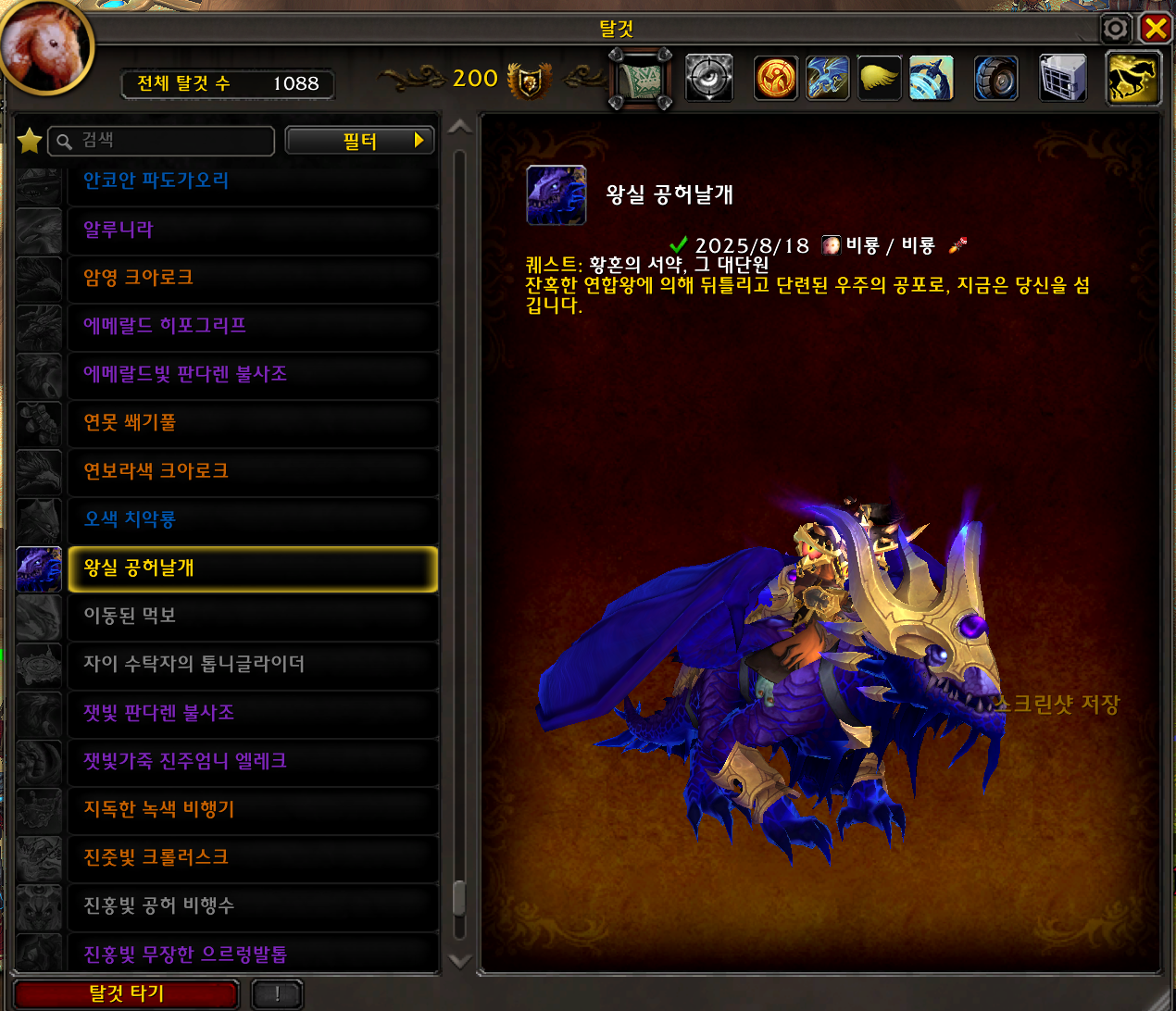 2025.08.18 왕실 공허날개 획득 1088번째 탈것