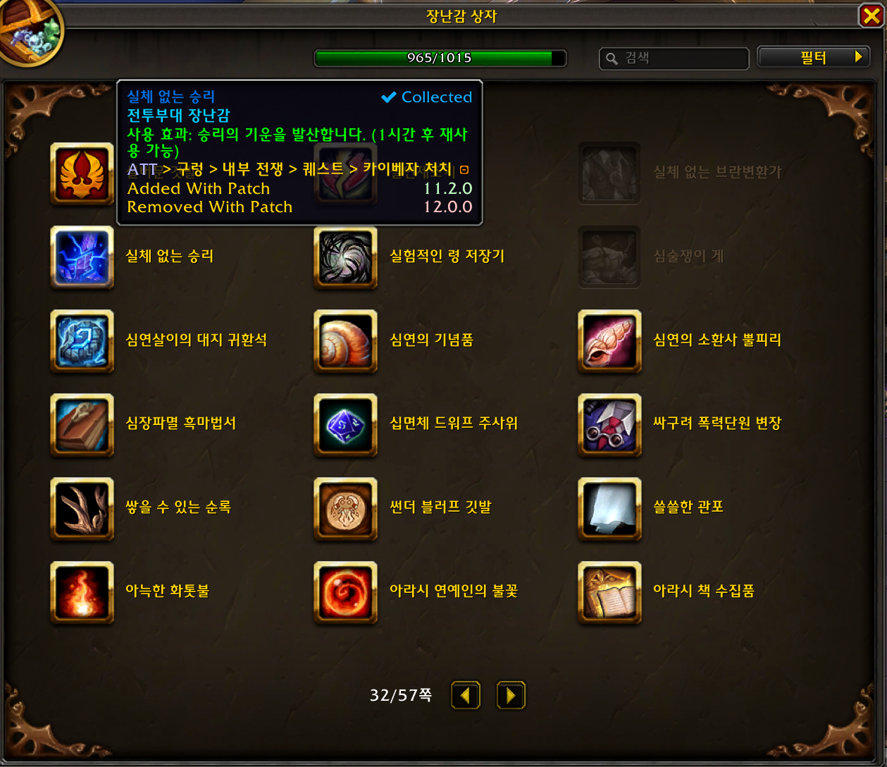 원래는 3시즌 구렁 카이베자를 처치하는 보상으로 주는건데 지금 버그인지 장난감상자에 추가되어있습니다.