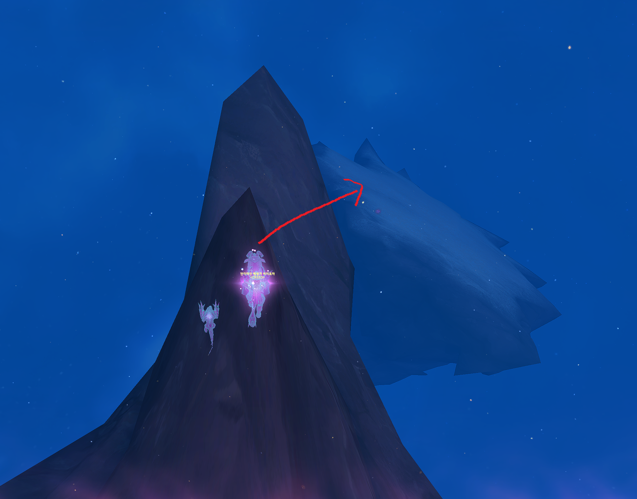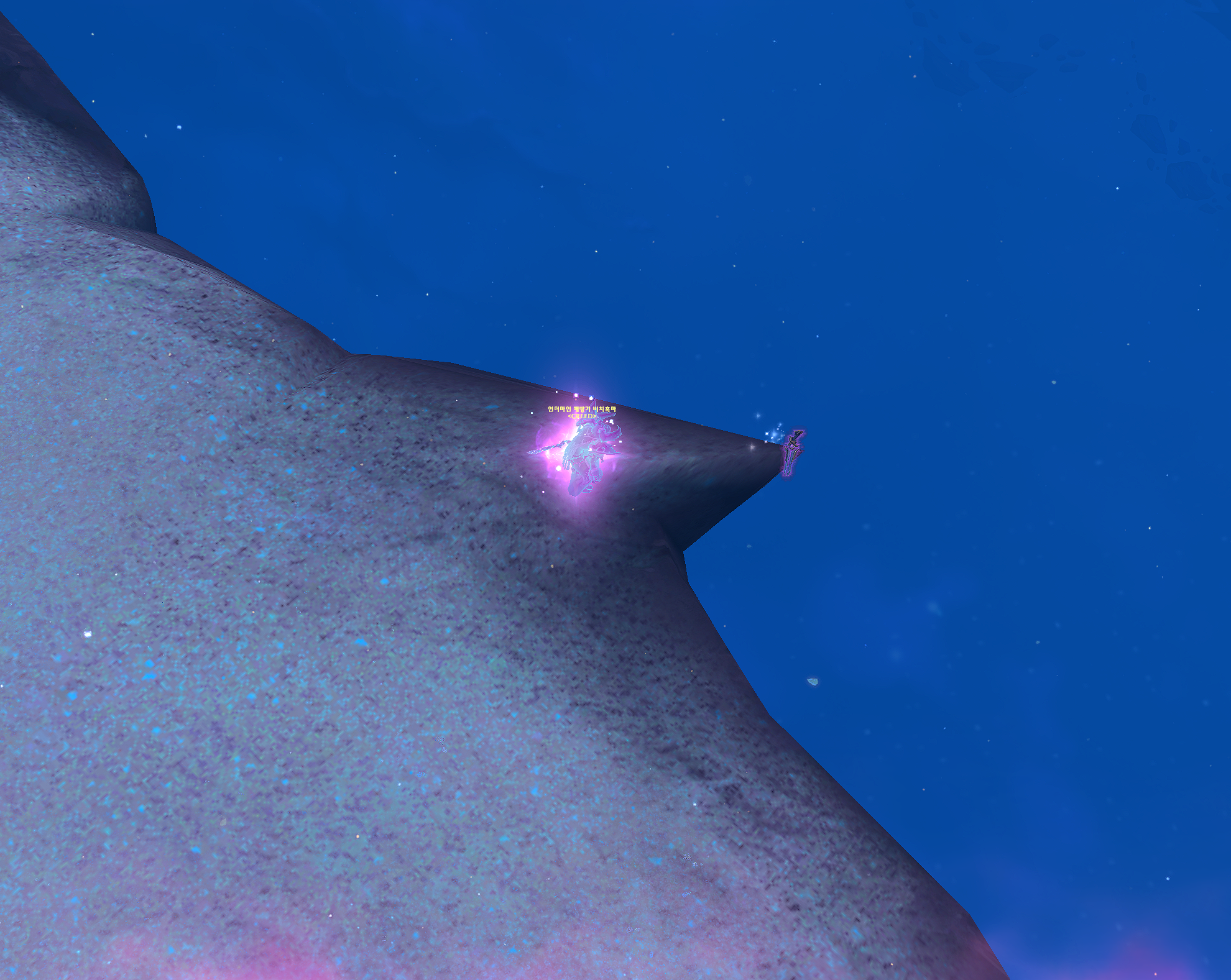 밑에 섬으로 떨어지면 됩니다. 낙사를 안당하는 클은 스킬로 내려가면되고 없으면 글라이더 쓰면 됩니다.