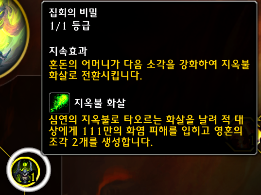 1분짜리 악마술: 대군주 버프가 생기면 불비를 한번 시전합니다. (불비는 1분안에써도 되고 1분이 지나고 써도됩니다.)