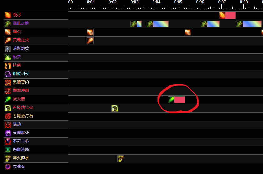 흑마 상위권 로그를 보면 전투시작하고 얼마안되서 지옥불 화살을 쓰는걸 볼수있습니다.