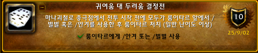 매우쉬운 업적입니다. 시작하기전에 룸이타르에게 /안겨 OR /벌벌 둘중 하나를 하면됩니다.