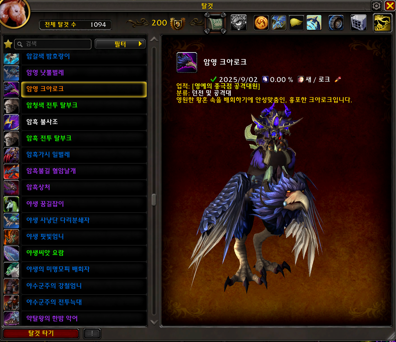2025.09.03 암영 크아로크 획득 1094번째 탈것