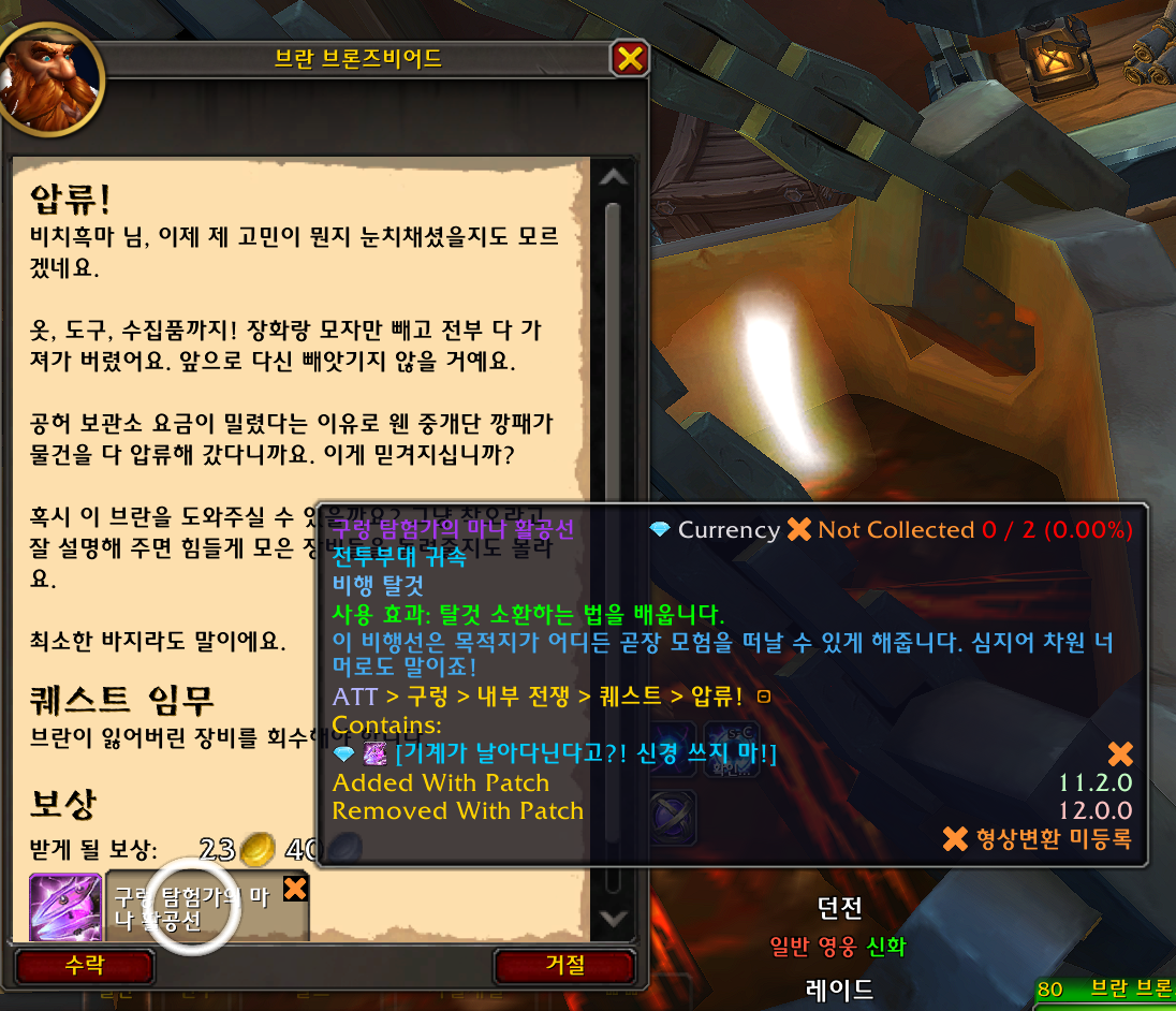구렁 본부에 가면 브란이 압류! 라는 퀘스트를 줍니다.