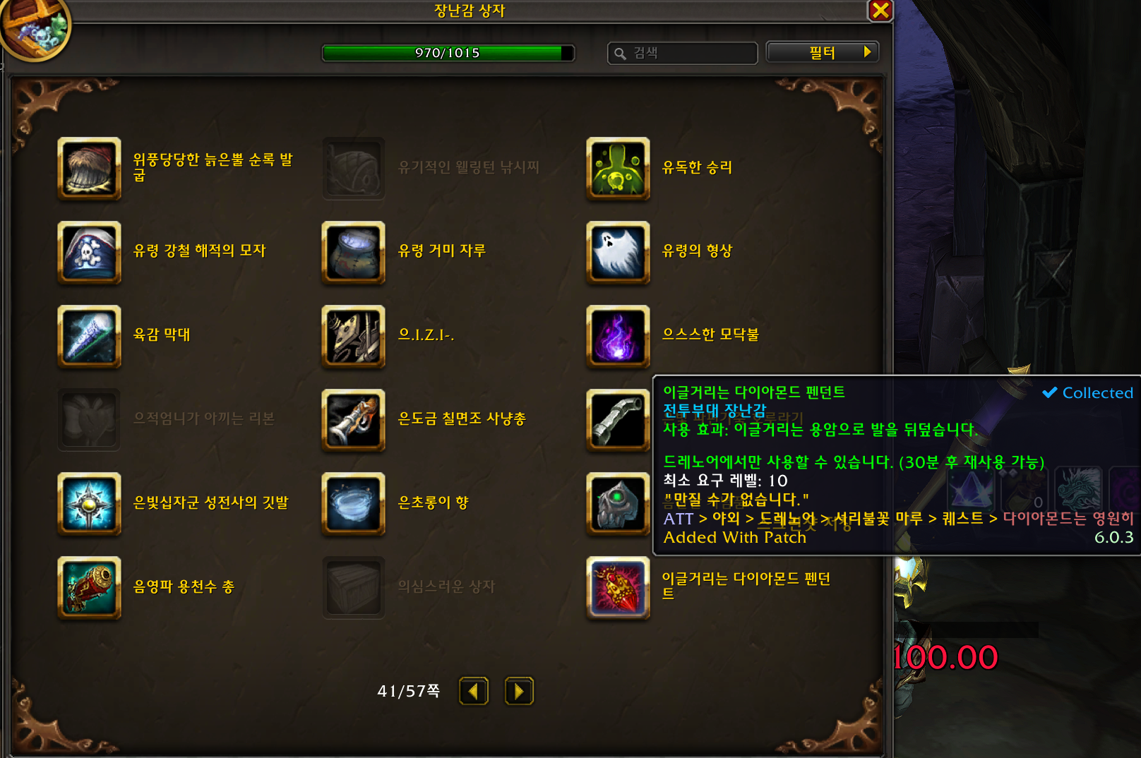 2025.09.18 이글거리는 다이아몬드 펜던트 획득 970번째 장난감