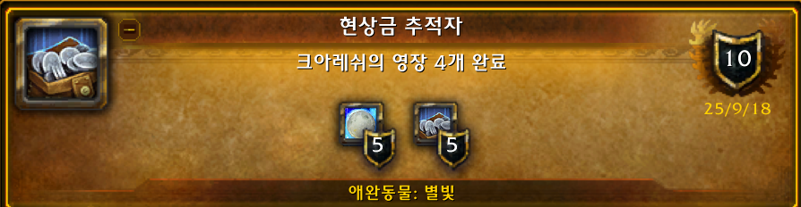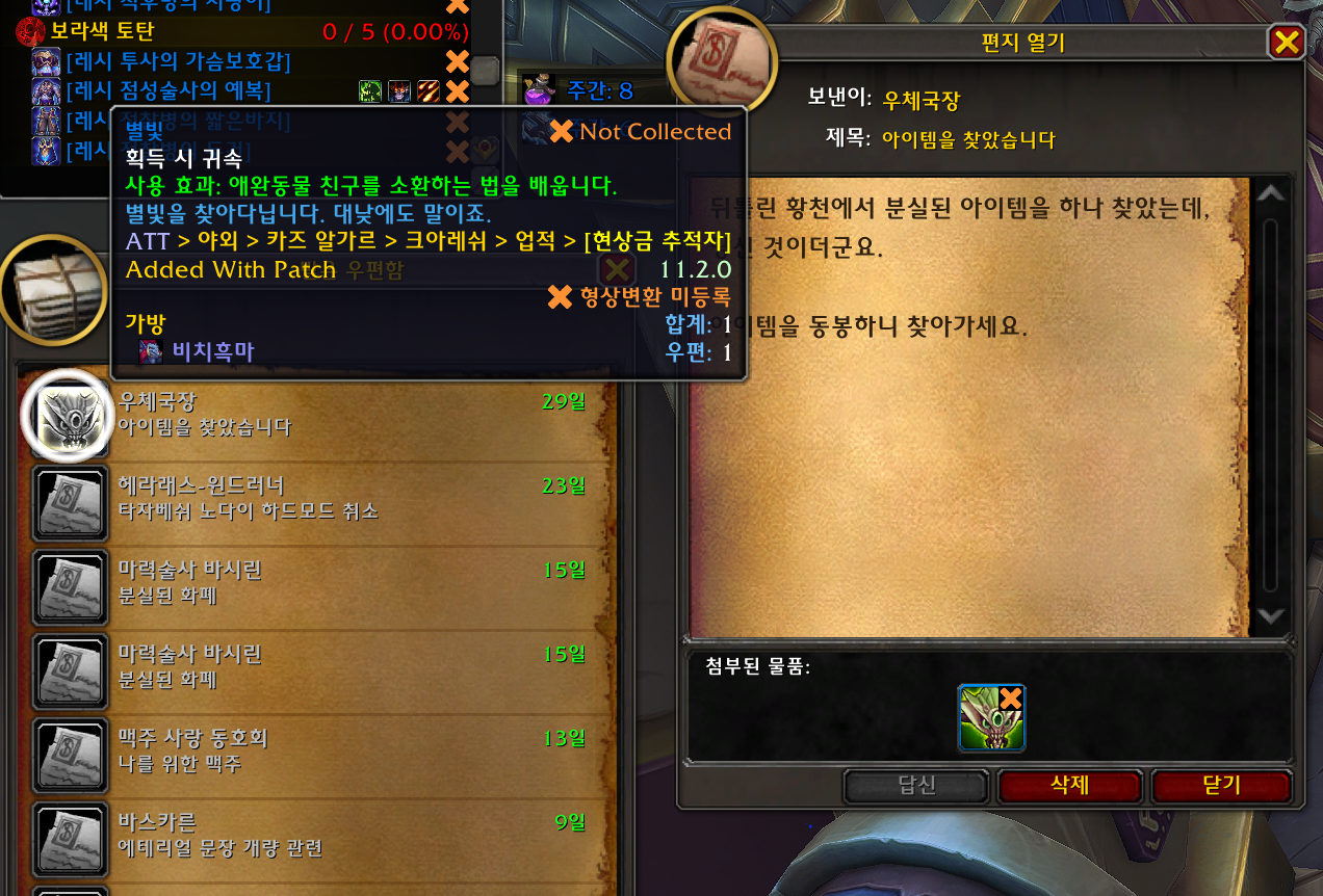 현상금 추적자 업적을 완료하면 우편으로 별빛 애완동물이 옵니다.