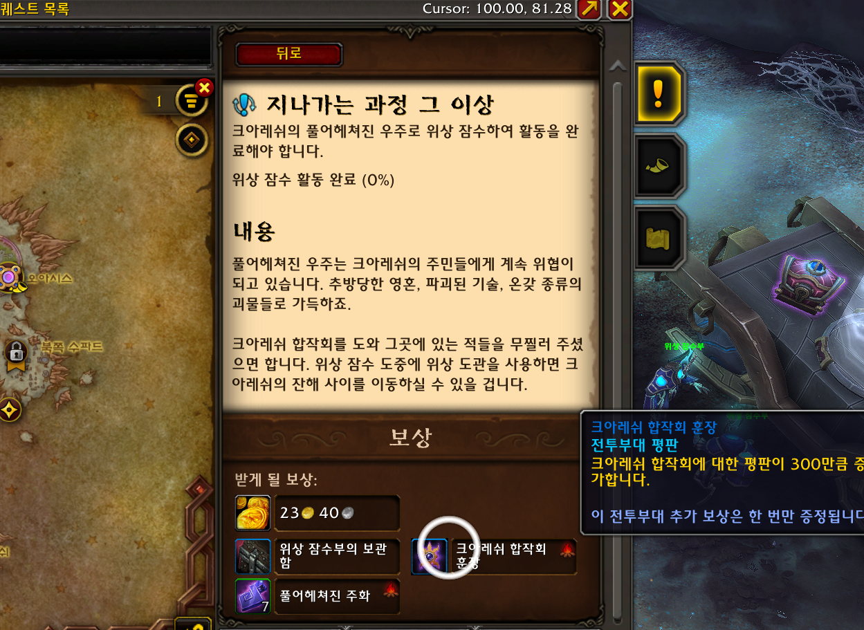 지나가는 과정 그 이상 주간퀘도 평판을 줍니다. 보통 전역퀘를 하면 지나가는 과정 그이상은 자동으로 100% 완료가 되기때문에 전역퀘 하기전에 받고 같이하면 됩니다.
