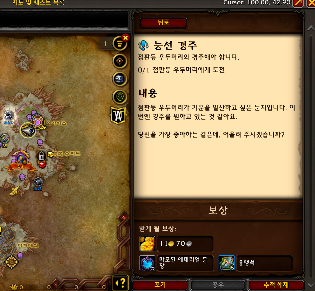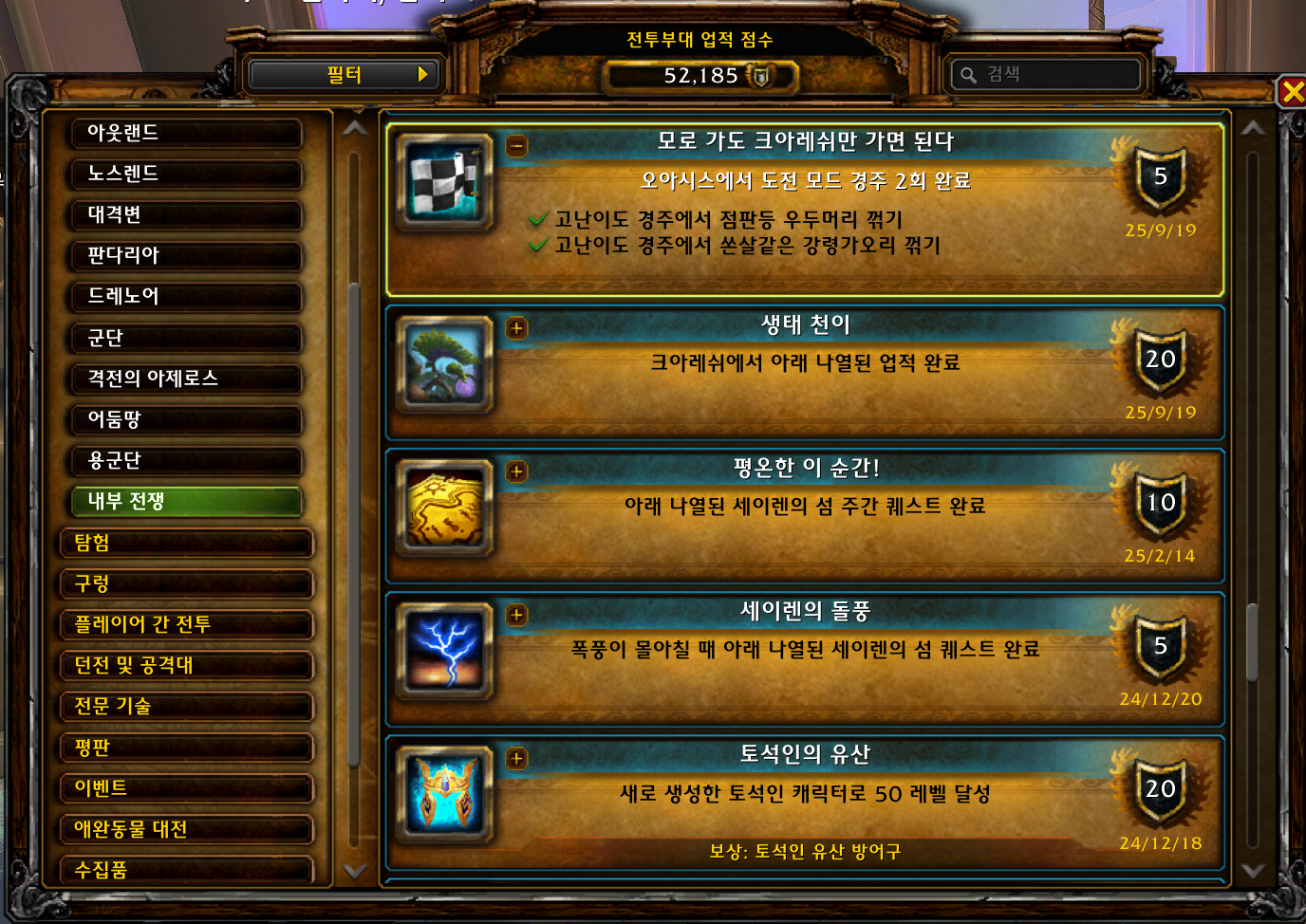 모로 가도 크아레쉬만 가면 된다 업적은 내부전쟁 확장팩 업적으로 생태천이 주간퀘중에