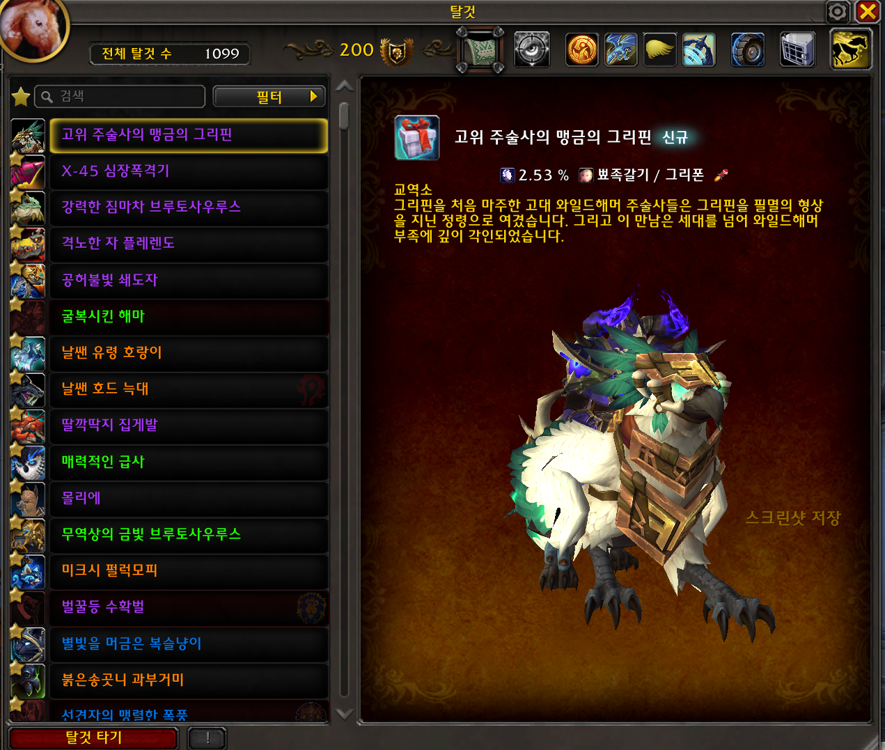 2025.09.24 고위 주술사의 맹금의 그리핀 획득 1099번째 탈것