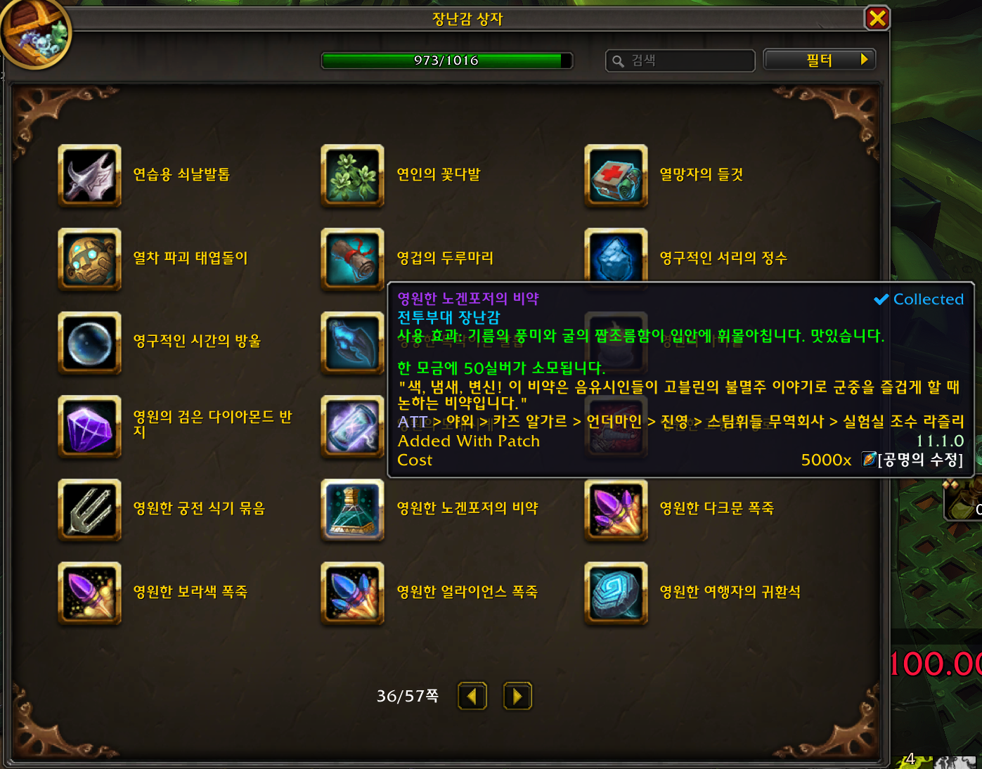 2025.10.01 영원한 노겐포저의 비약 획득 973번째 장난감