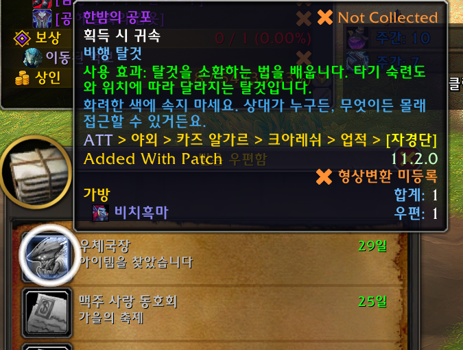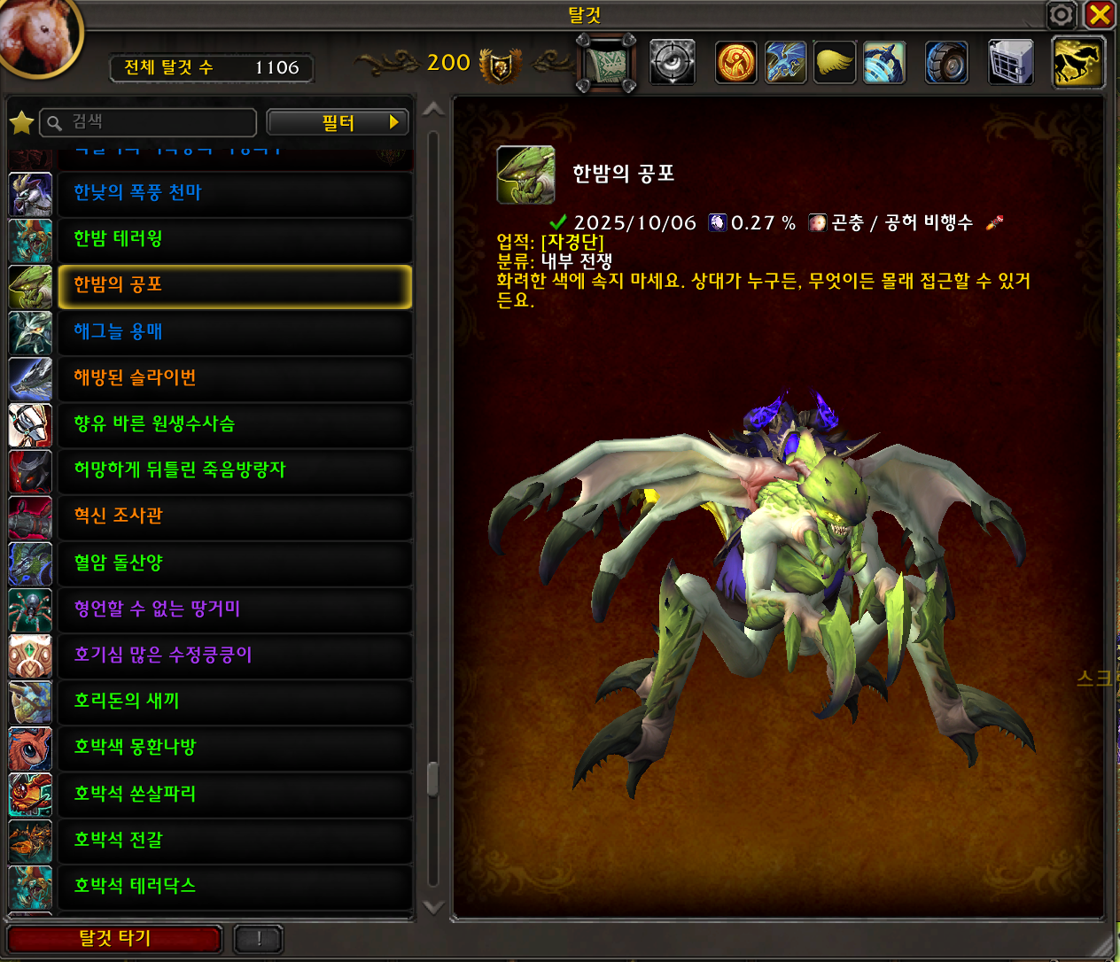 2025.10.06 한밤의 공포 획득 1106번째 탈것