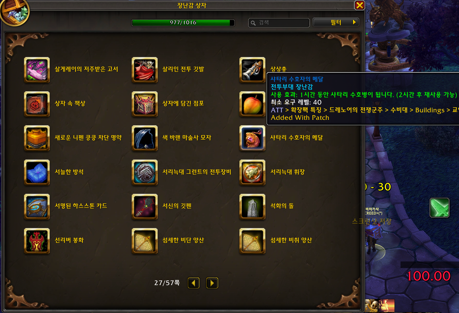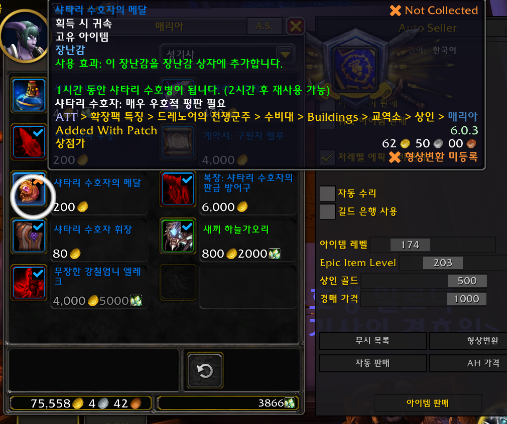 샤타리 수호자의 메달 장난감은 드레노어 확장팩 장난감으로 얼라이언스 전용 장난감입니다.