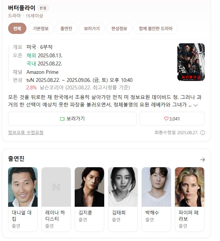 케데헌때도 그렇지만 미드인데 한국배경에 한국말도 많이 나오다보니 소위말하는 국뽕이 조금 느껴지는 부분은 좋았다.