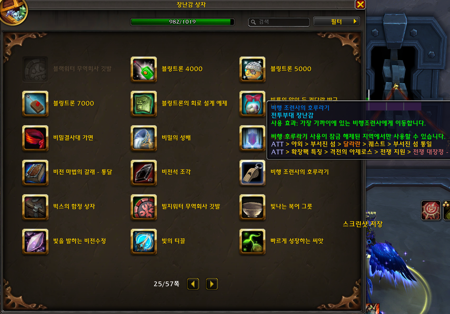 원래는 군단 당시에 가까운 와이번으로 순간이동 시켜주는 아이템이었는데 이번에 장난감으로 변경되었습니다.
