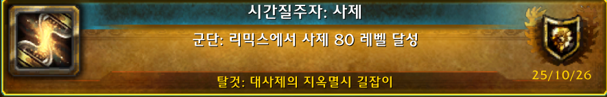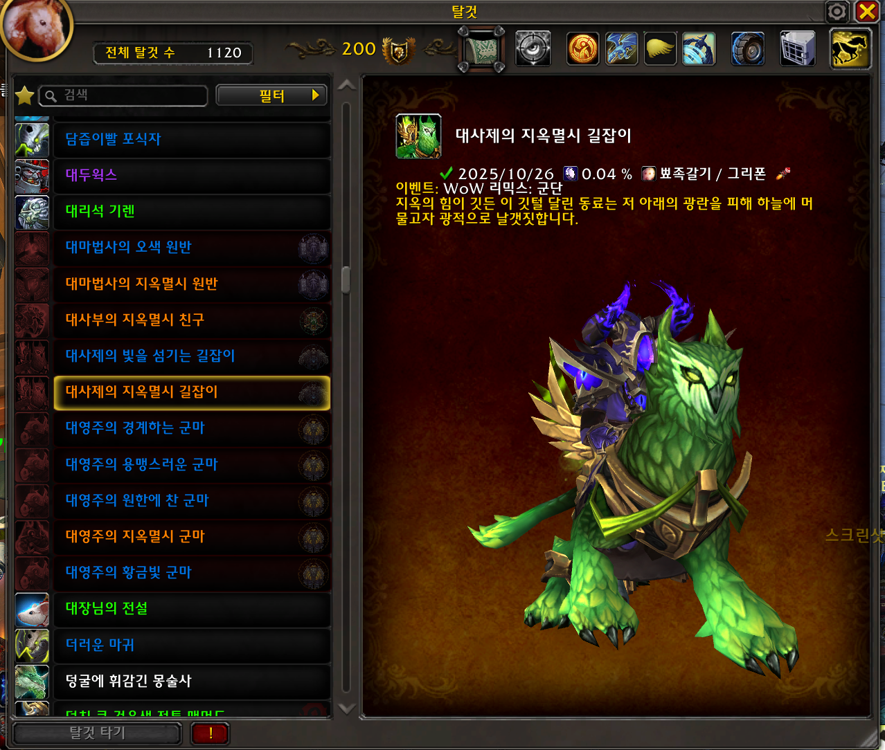 2025.10.25 대사제의 지옥멸시 길잡이 획득 1120번째 탈것