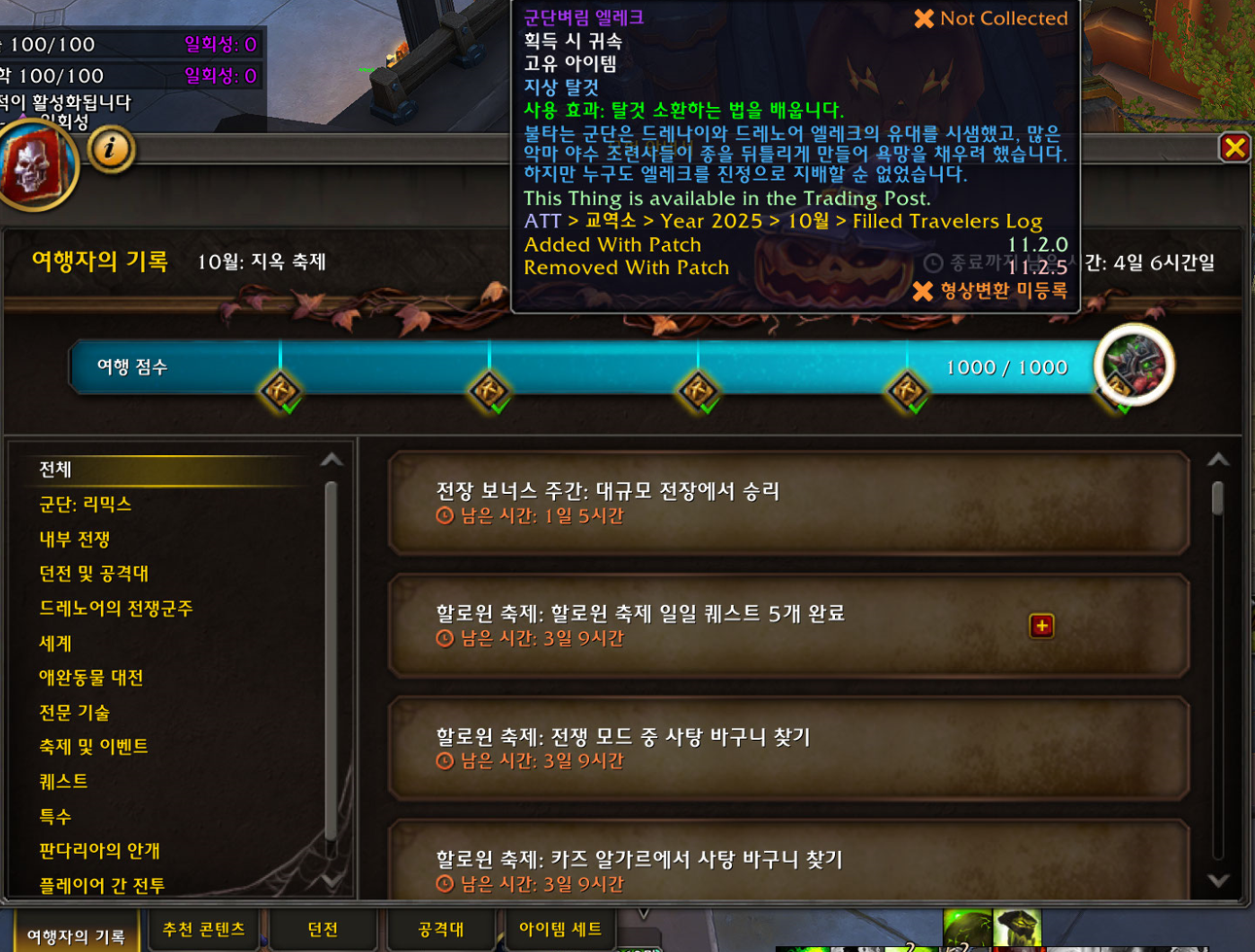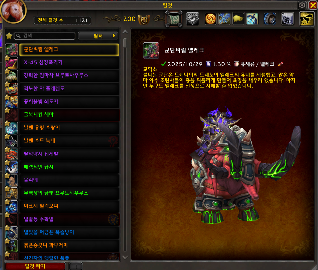 2025.10.29 군단벼림 엘레크 획득 1121번째 탈것