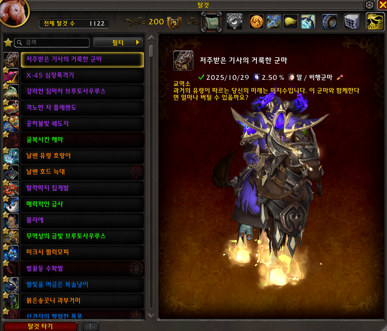 2025.10.29 저주받은 기사의 거룩한 군마 획득 1122번째 탈것