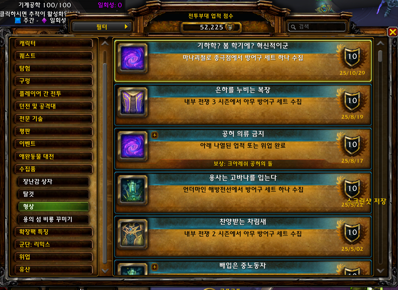 | [와우업적]극복할 수 없는 수집품 (0) | 2026.01.22 |