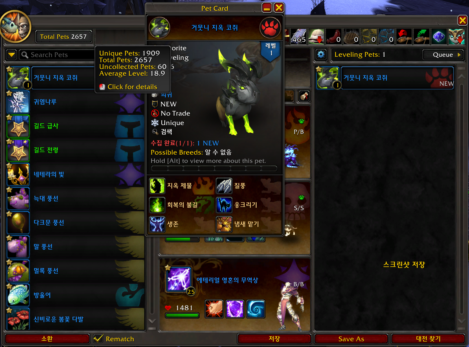 2025.10.29 거뭇니 지옥 코쥐 획득 1909번째 애완동물