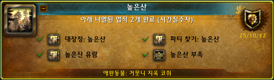 대장정: 높은산 - 높은산 퀘스트업적이라 당연히 해야합니다.
