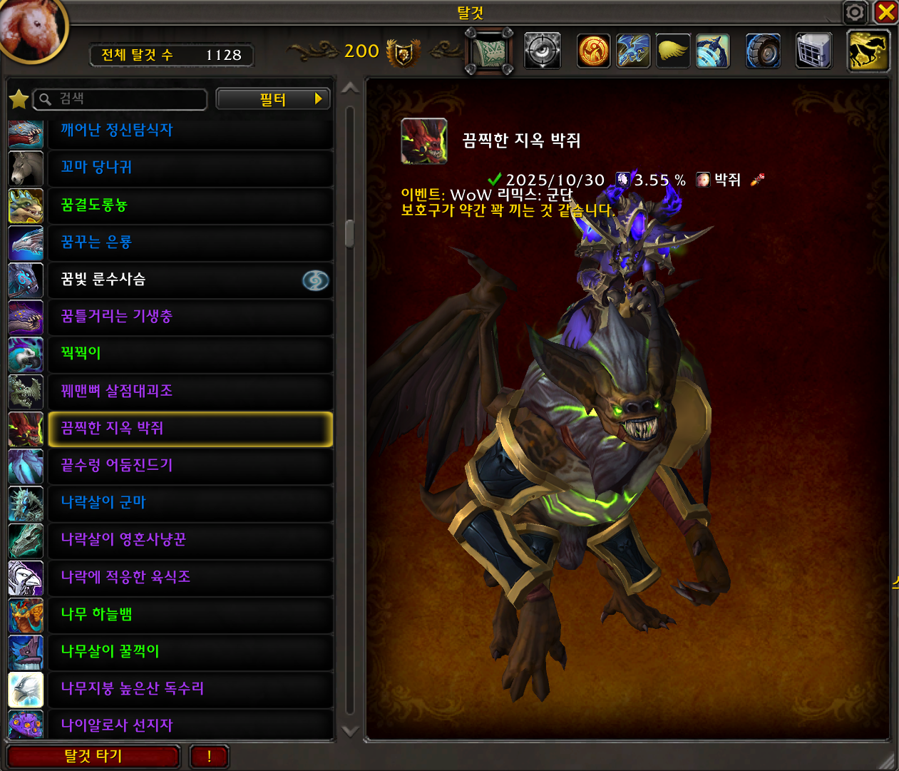 2025.10.30 끔찍한 지옥 박쥐 획득 1128번째 탈것