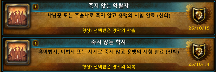 길드원분중에는 칼도레이 여왕의 왕실 예복이 너무이뻐서 이것만 딱얻고 군단리믹스 그만둔사람도 있고 누구는 업적은 패스하고 청동으로 살수있는거만 다사는게 목표인사람이 있을수있고 모든걸 다하는게 목표인사람도있을수있고