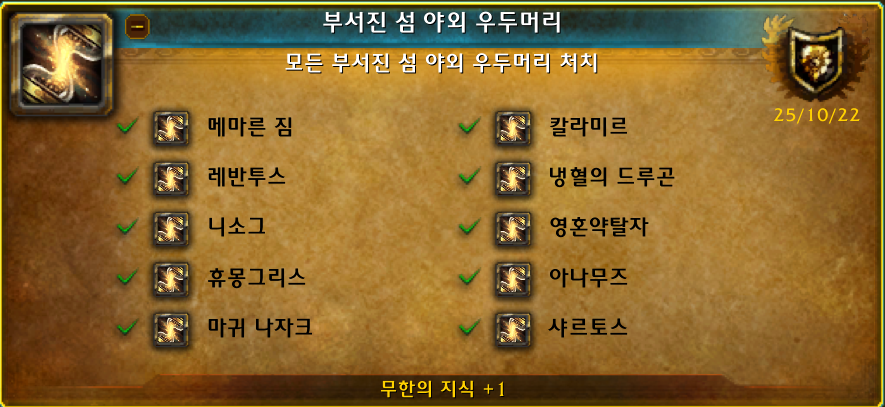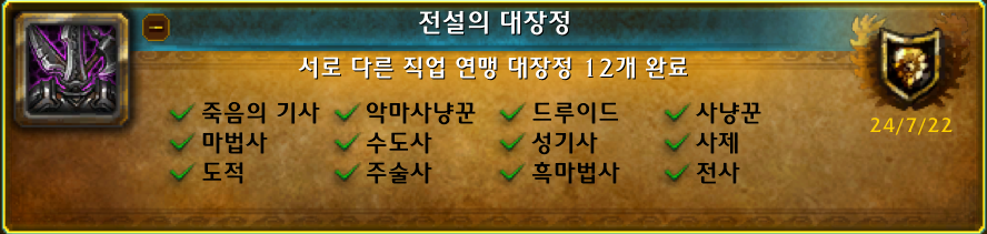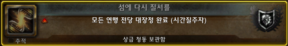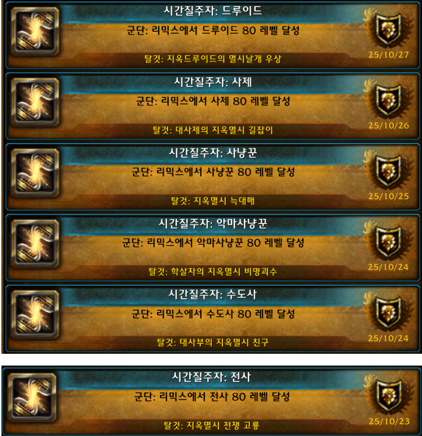 제가 조금 후회하는건 연맹 대장정으로 랩업을 안한것이 후회됩니다. 모든 직업 연맹전당 대장정(섬에 다시 질서를)이 있는것을 나중에 알았습니다. 인게임에는 보이지가 않아서 숨겨져있는 업적인것 같습니다... 이걸 알았다면 모든캐릭을 연맹전당 대장정퀘 쭉하면서 랩업을 하였을텐데 너무 아까웠습니다.