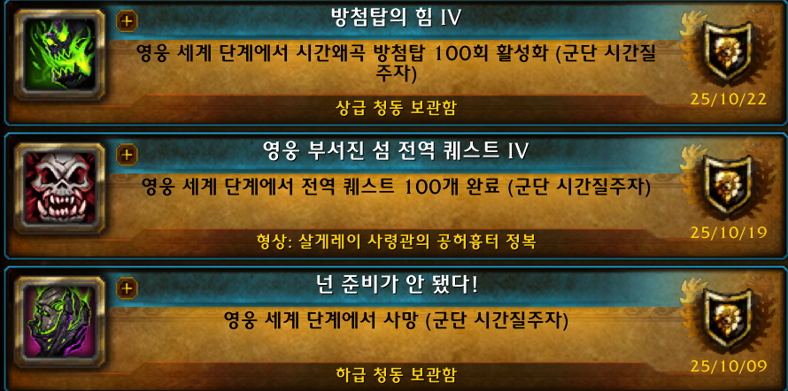영웅 세계 단계 업적들은 어려운건 없고 단순 노가다입니다.