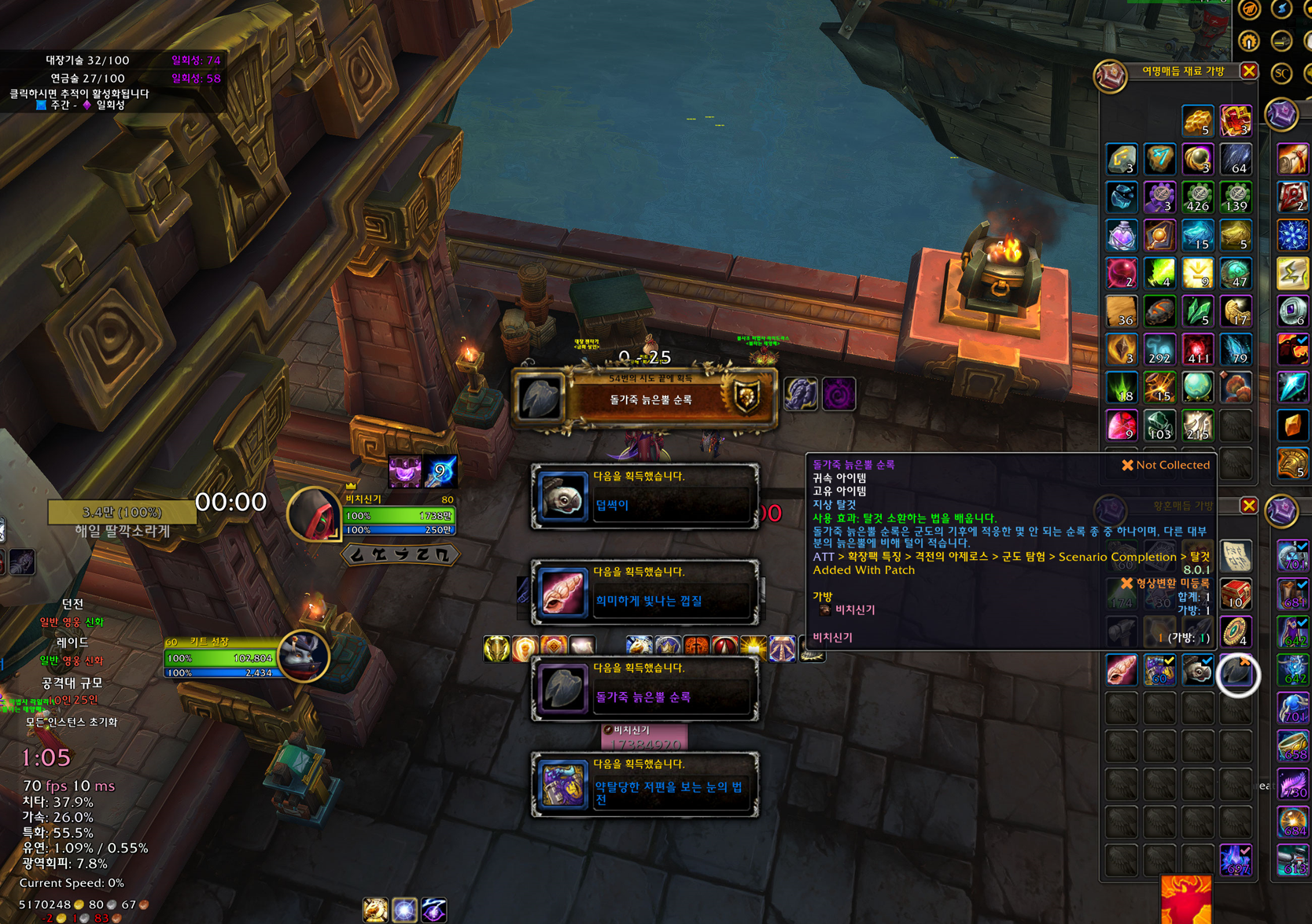 돌가죽 늙은뿔 순록탈것은 격전의 아제로스 확작팩 탈것으로 군도탐험으로 획득가능합니다.