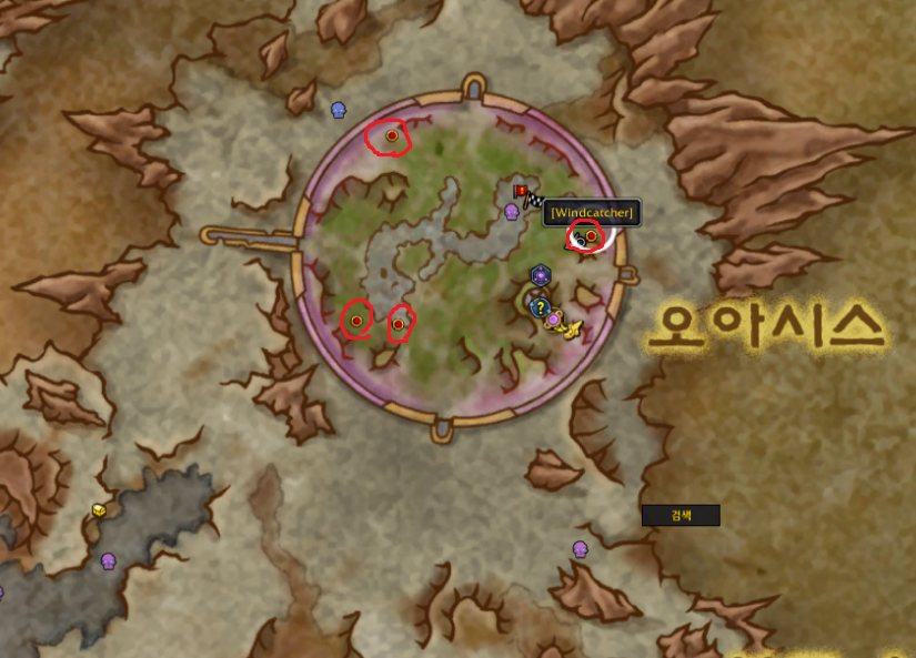 오아시스에 4가지 물체가 있습니다. 1가지를 클릭하면 3분짜리 버프이기때문에 3분안에 4개를 다 클릭해야합니다.